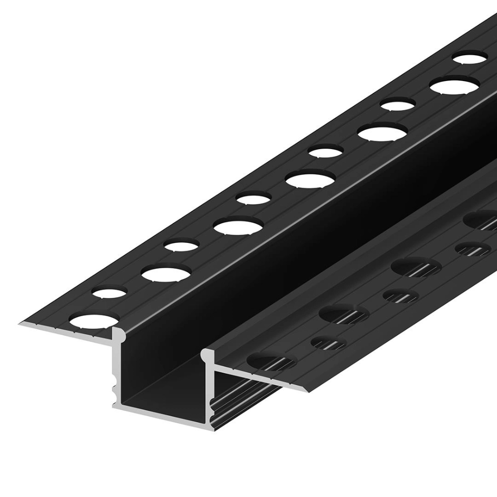 Vestavný LED profil GK18-3 v černém provedení je určený pro montáž do sádrokartonu. Disponuje prostorem pro jeden LED pásek o šířce až 13,4 mm. Vhodný pro tvorbu čistých světelných linií zarovnaných se stropem nebo stěnou.