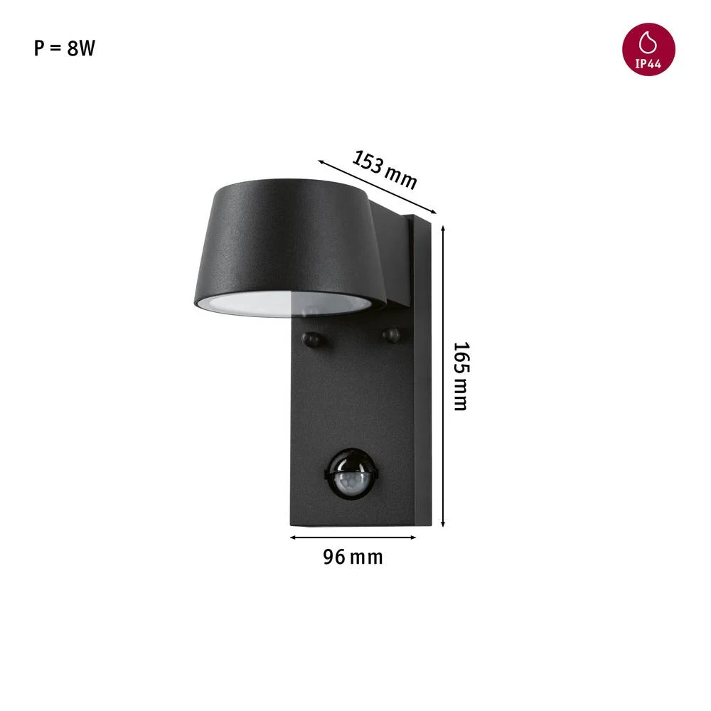 Venkovní nástěnné svítidlo Capea v černém provedení od výrobce Paulmann nabízí teplé bílé světlo a je vybaveno pohybovým čidlem pro snadnější ovládání. Světlo má ochranu IP44 a výkon 6W při napětí 230V.