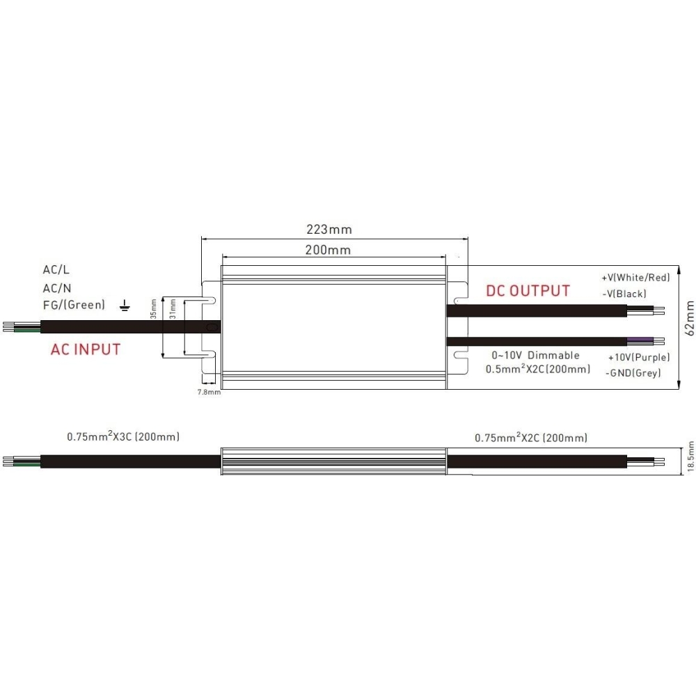 LED zdroj DIM67 12V 100W je opatřen: