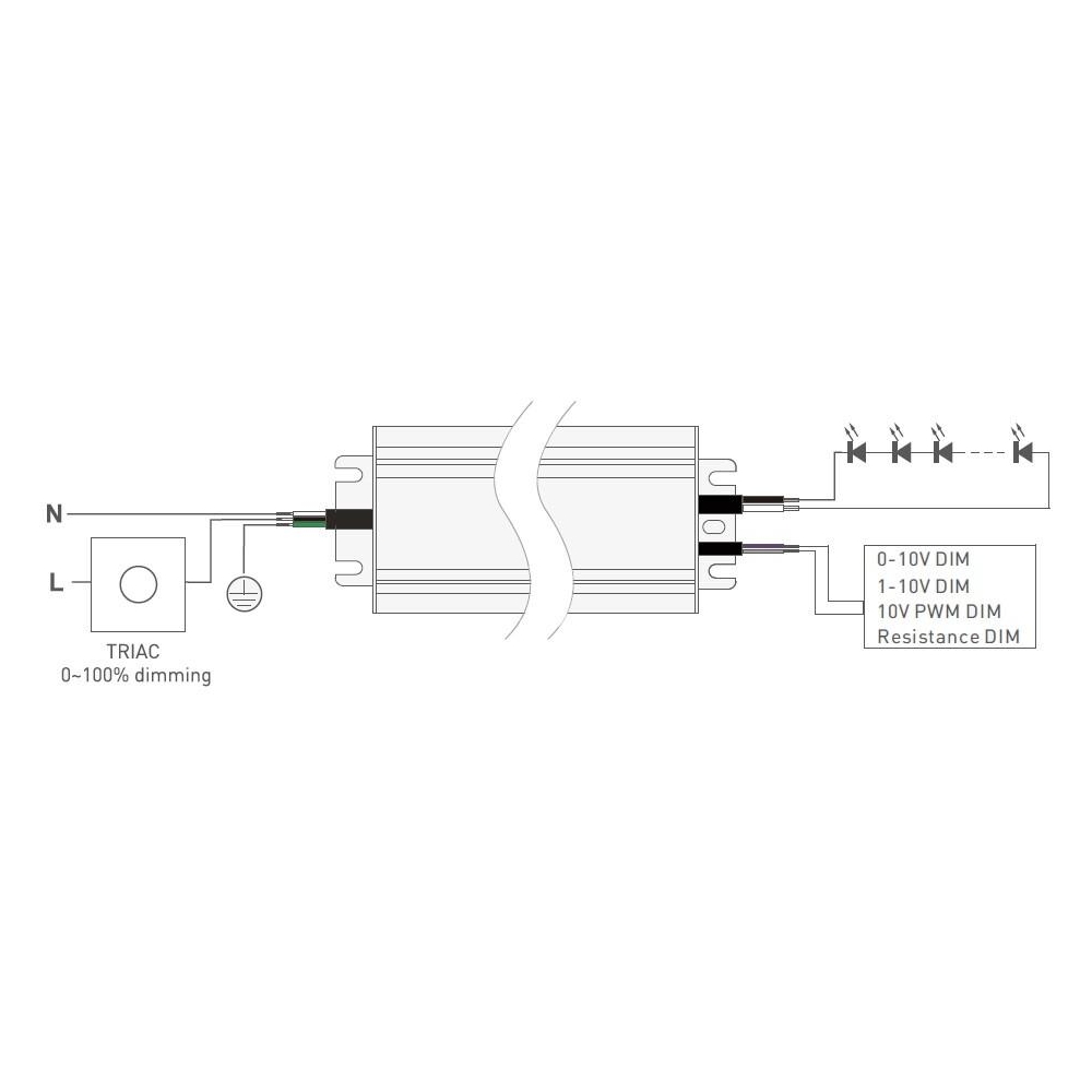 - na vstupu pomocí TRIAC stmívače (průběh a rozmezí stmívání u triakových stmívačů závisí na modelu stmívače)