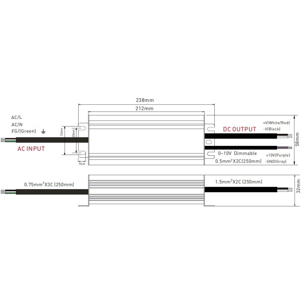 - Rozměry (mm) (DxHxV): 238x58×32