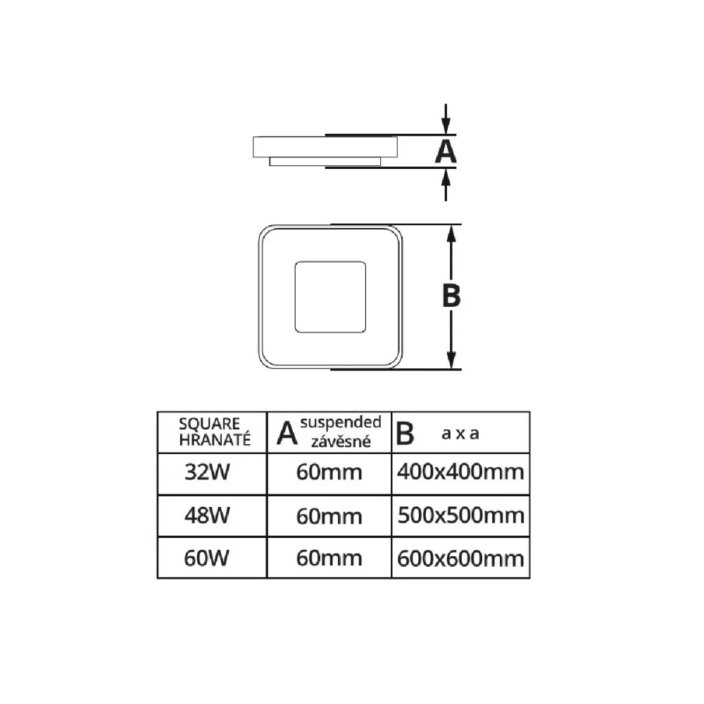 - Rozměry: 500 × 500 × 60 mm (šířka × délka × výška)
